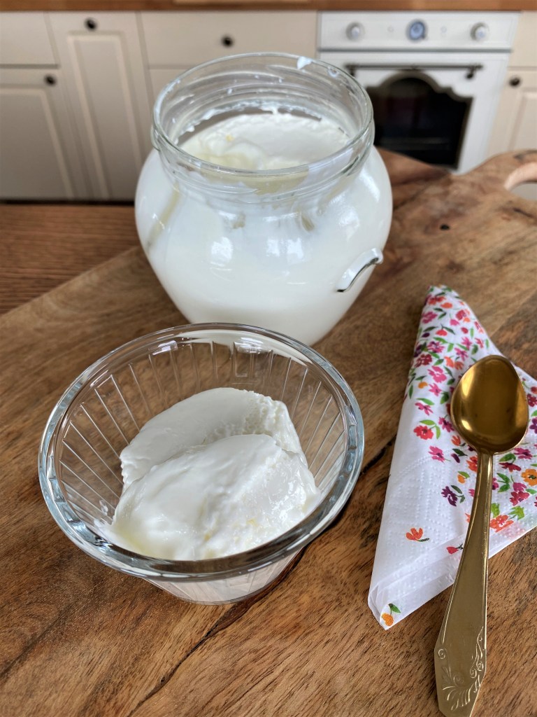 Закваска: за предпочитане домашна, но можете да използвате и от купено био кисело мляко. Важното е наличието и на двете бактерии – Lactobacillus bulgaricus и Streptococcus thermophilus, както и тяхното съотношение, защото именно те са отговорни за качествата на киселото мляко – аромат, консистенция, киселинност;