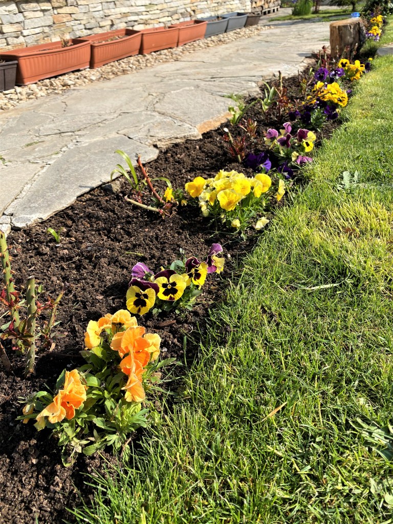 Ако имате оформени цветни лехи с рози, които сега започват развитието си, можете да използвате теменужки за да придадете допълнителна цветност на градината през този месец.