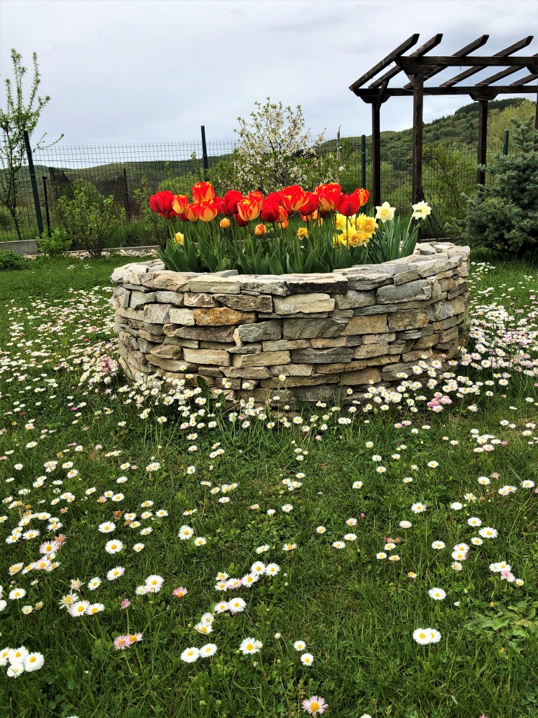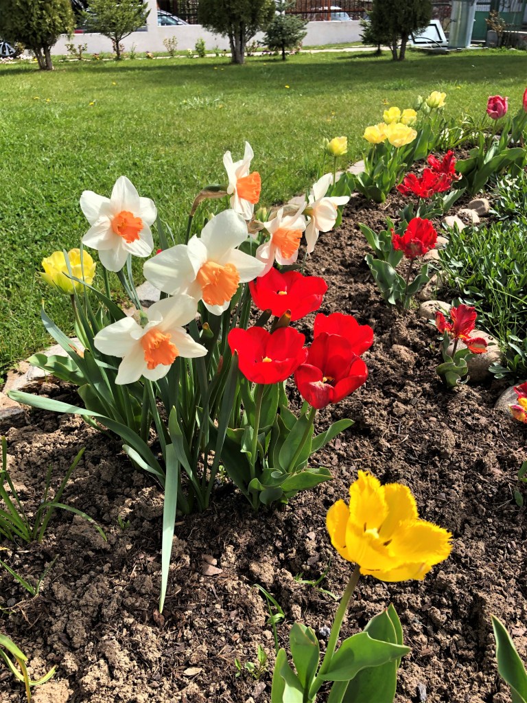 През април цъфтят лалетата. При сухо време трябва да се поливат редовно.