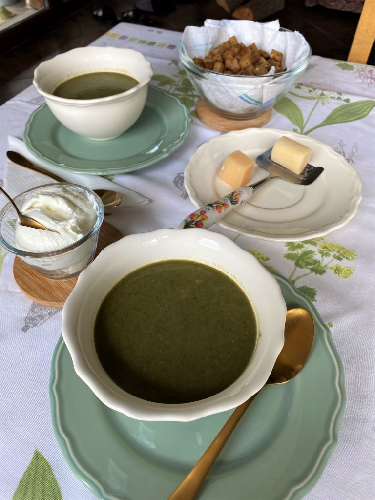 - Отцедете зеленчуковия бульон, добавете сока на лимона и сол и пасирайте. Ако прецените, че супата е по-гъста – добавете от бульона до получаване на желаната плътност.
