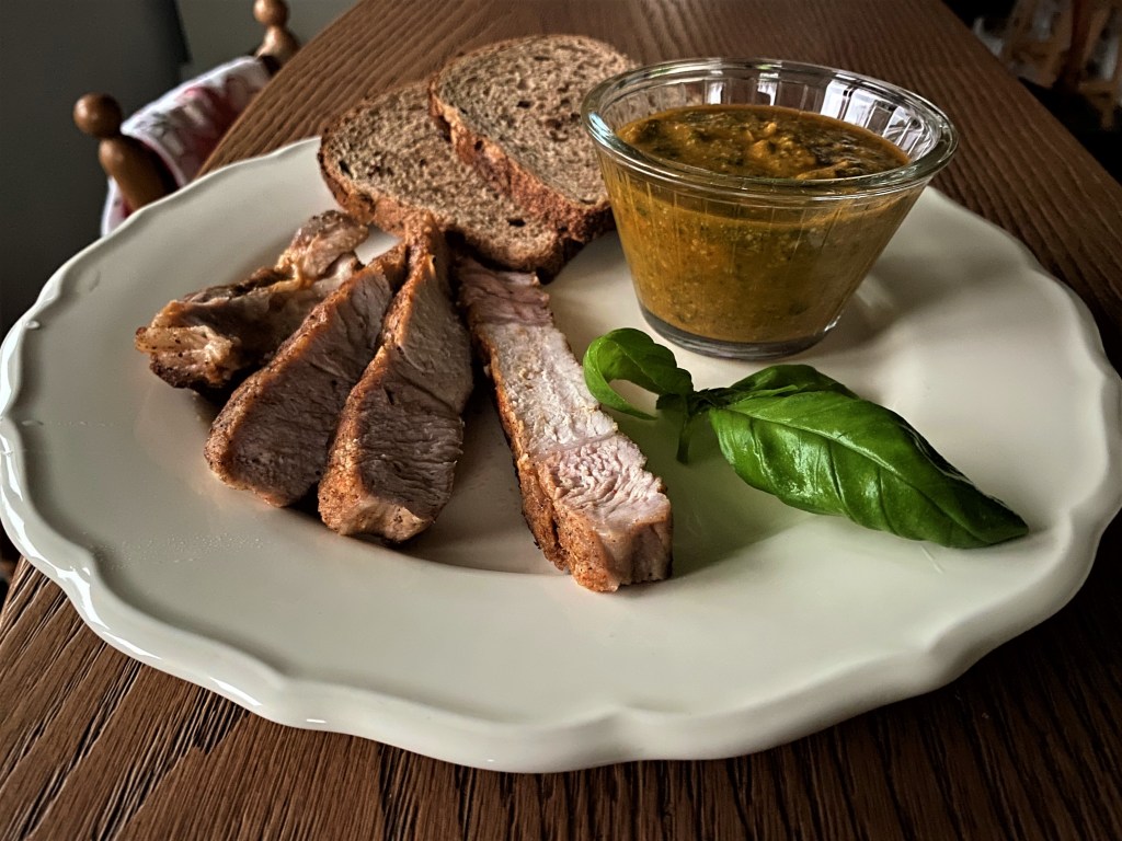 Предлагам ви да я комбинирате с нарязана на лентички свинска пържола и препечени филийки.