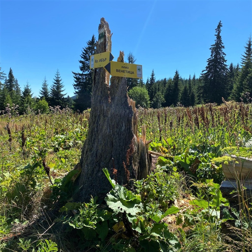 От поляната със заслона на ловците освен в посока х.Белмекен може да се поеме и към връх Ибър и х.Завраница, но няма указание за времетраенето на прехода.