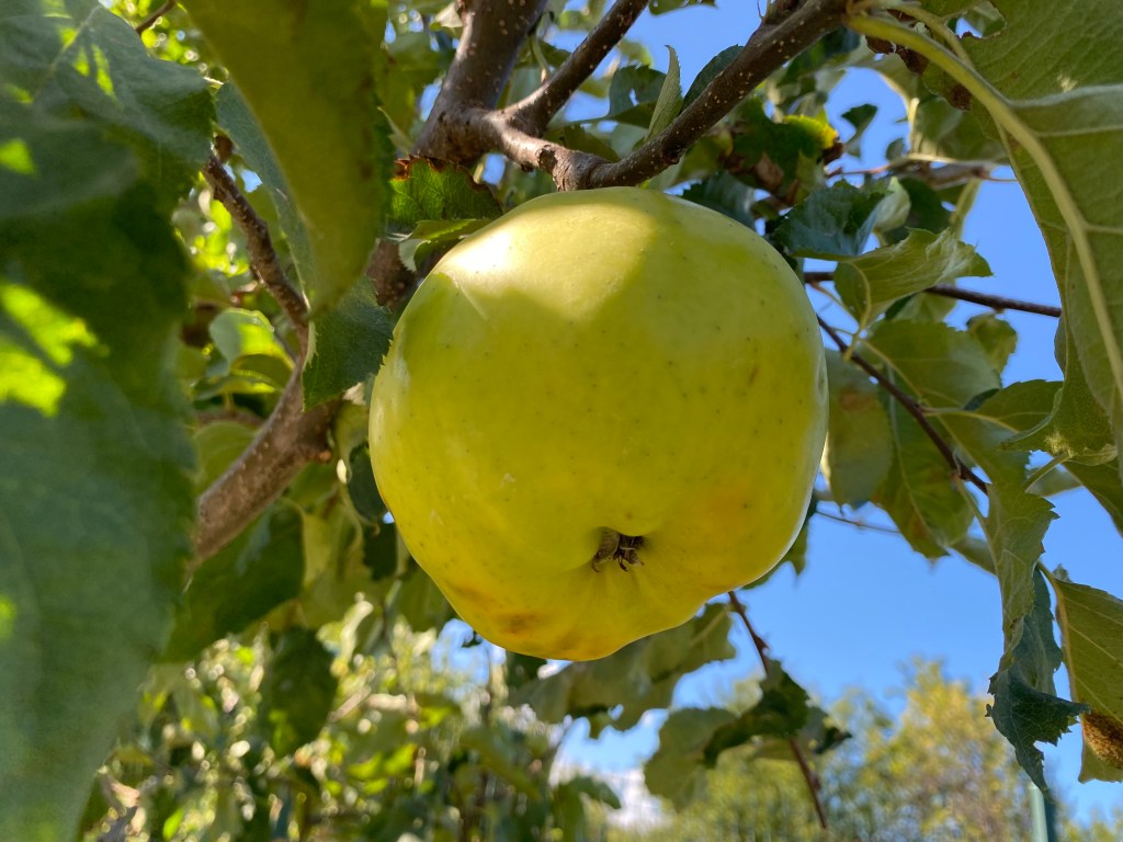 Голямата ни гордост в тази недобра за ябълките в района година е единственият оцелял екземпляр, който претендира за рекорд. След всяка буря или по-силен вятър ходим да проверяваме дали е още на клона.