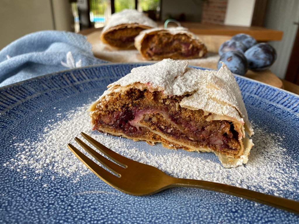 Така се сдобих и с разкошни сини сливи /в нашата градина нямаме/, но сме решили да сложим. Всички ги обичаме и докато се спретнах да приготвя един сладкиш и един щрудел – вече ги нямаше 🙂