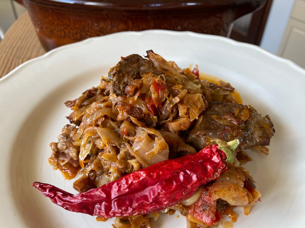 Започвам с една класика – свинско с кисело зеле. Не искам да се хваля, но киселото ни зеле тази година е чудесно! Няма да се впускам в подробности за ползите от него 🙂