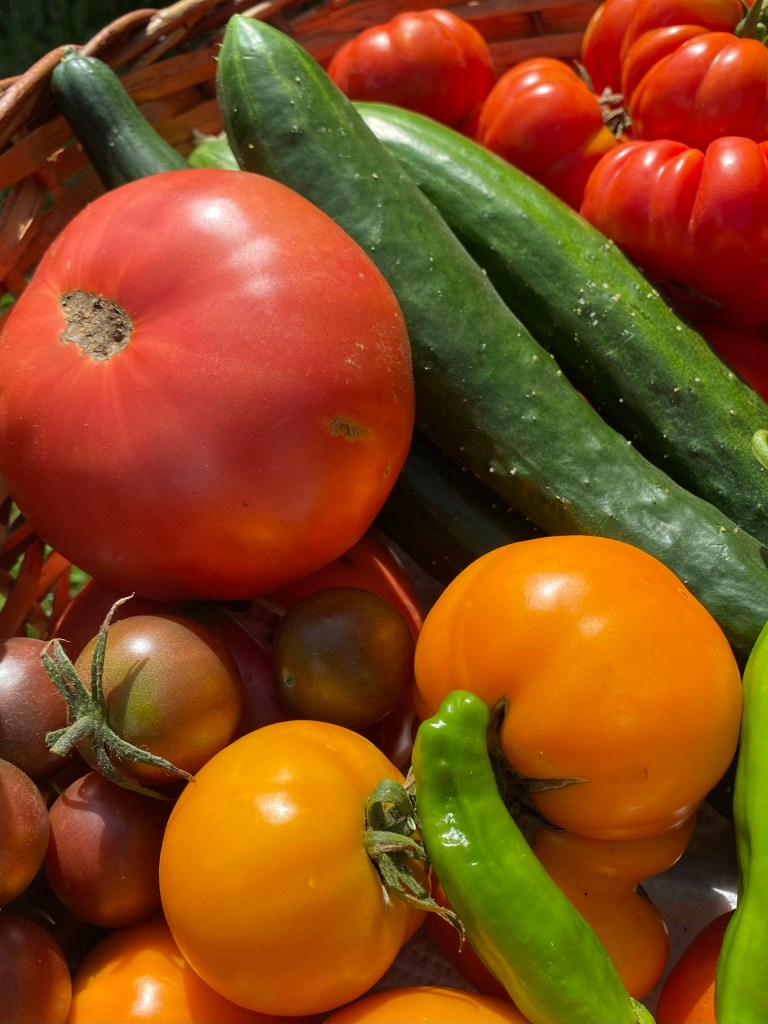 В голямата био градина отделихме едно каре за отглеждане на био зеленчуци – домати, краставици, чушки, цвекло, моркови, подправки. От климатична гледна точка годината беше много благоприятна за богата реколта.