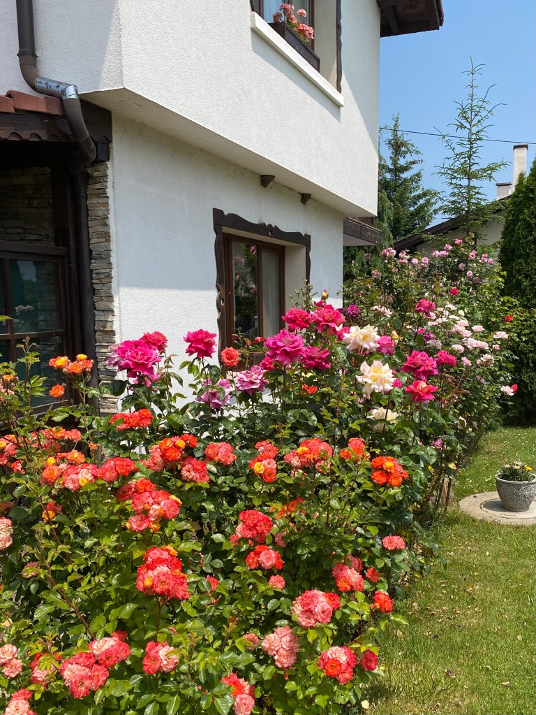 Ще вляза отново в градината за да покажа нашите прекрасни 70 рози. Тук е мястото да кажа, че розата не е претенциозно растение, но правилната грижа за нея е важна да я поддържа здрава и да ни радва по-дълго. Това вкючва редовно подрязване, почистване, торене, поливане, пръскане с инсектицидни и фунгицидни препарати /използвам био препаратите от голямата градина или някои естествени такива/.