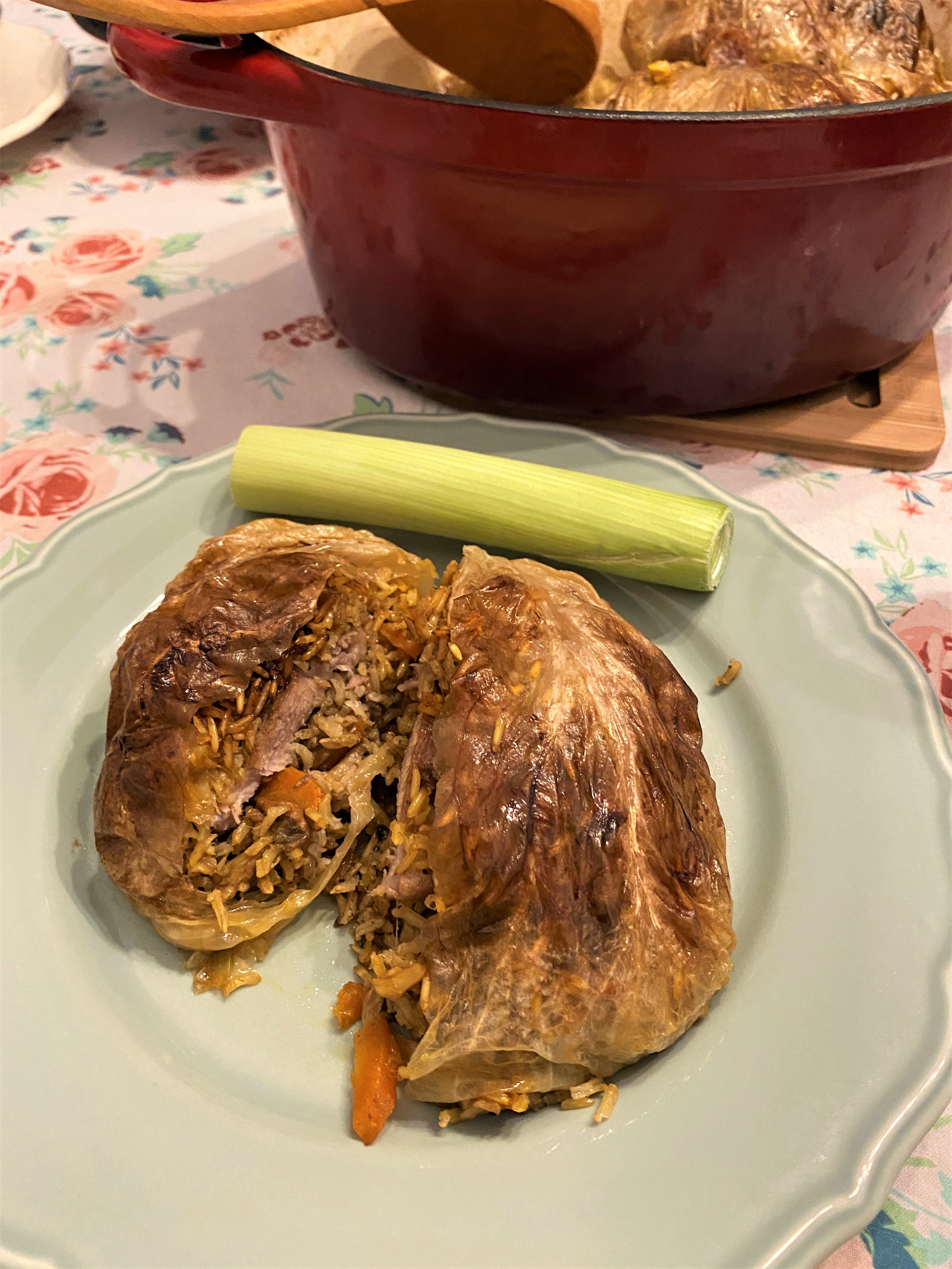 - Разстиламе корите, започваме подреждането на щрудела като намазваме с разтопено масло всяка кора, слагаме от плънката, поръсваме със счукани орехи и галета и навиваме на руло;